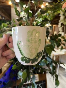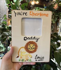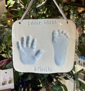 A single Imprint, name and age plus basic decoration on any piece is done for you at absolutely no charge. Any additional imprints on the same piece of bisque – £3 each. Additional writing or decoration – £2-£5